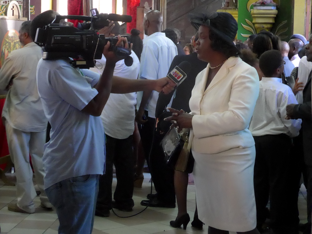 Hier herrschte auch eher eine verhalten fröhliche Stimmung als Betroffenheit und tiefe Trauer. Wir bekamen leider nicht heraus, welche Bedeutung die verstorbene für Castries hatte. Auf alle Fälle muss sie zumindest lokal sehr prominent und beliebt gewesen sein, was wir aus der Menge der Anwesenden schlossen.