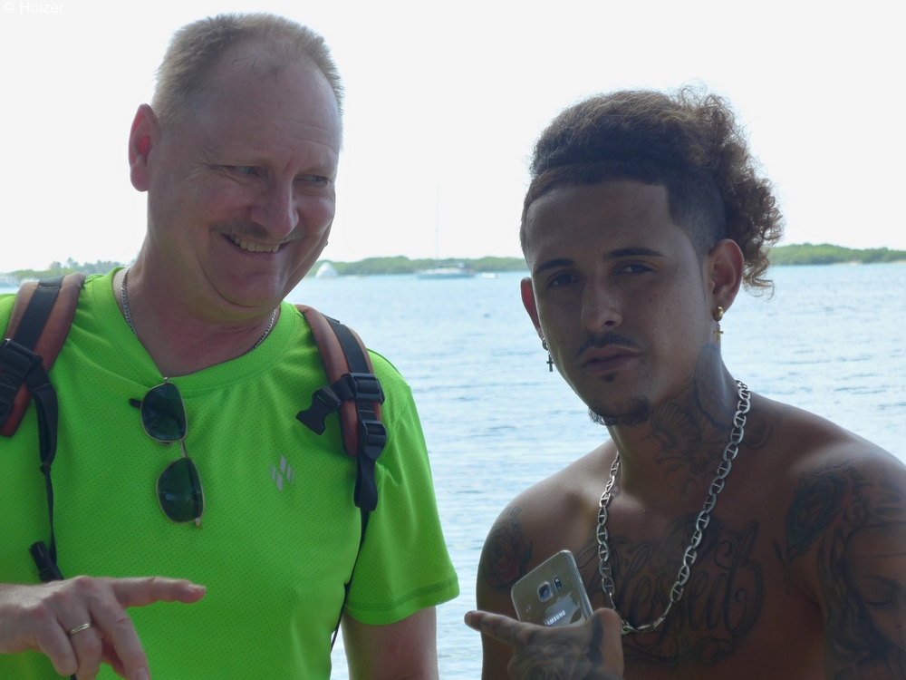 Aber alles war gut. Leguane und Pelikane waren reichlich vorhanden. Sogar an der gleichen Stelle wie damls konnten wir Fische füttern. Das Brot, das gestern keine Abnehmer fand, wurde jetzt freudig angenommen. Auch der Strand war noch da, also Hosenbeine hochkrempeln und durchs warme Wasser waten.