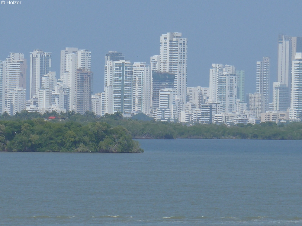 Cartagena de Indias, wie die Stadt auch zur Unterscheidung ihres Pendants in Spanien genannt wird, hat gut eine Million Einwohner und erinnert mit seinen modernen Wolkenkratzern und Glaspalästen an Miami (so steht es zumindest im Reiseführer).