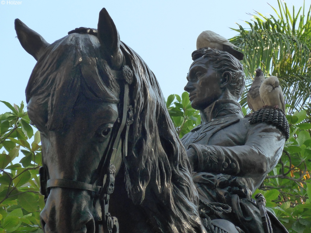 Das Denkmal des Freiheitskämpfers Simón Bolívar teilt das Schicksal der meisten Denkmäler. Es wird von Tauben vollgesch…