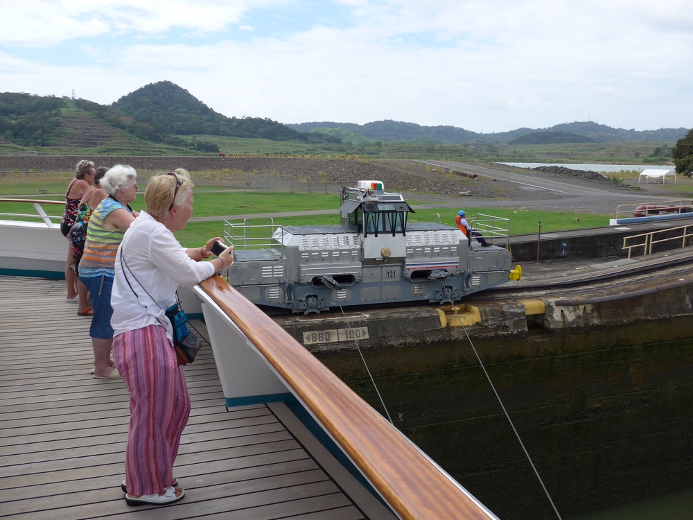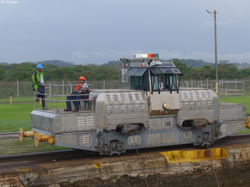 Gegen 12:00 Uhr erreichten wir die nächste Schleuse, die Pedro-Miguel-Schleuse. Hier konnten wir die komplette Schleusung von A bis Z beobachten. Und es war immer noch genauso spannend wie bei unserer ersten Passage.
