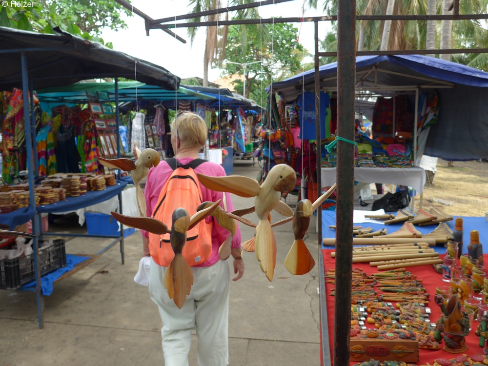 An der Uferpromenade hingegen gab es alles, was das touristische Herz begehrt. Sie war gesäumt von Verkaufsständen und Tischen mit den üblichen Holz- und Lederwaren und sonstigem, wovon man sich erhoffte, dass es der Kreuzfahrer unbedingt benötigt.