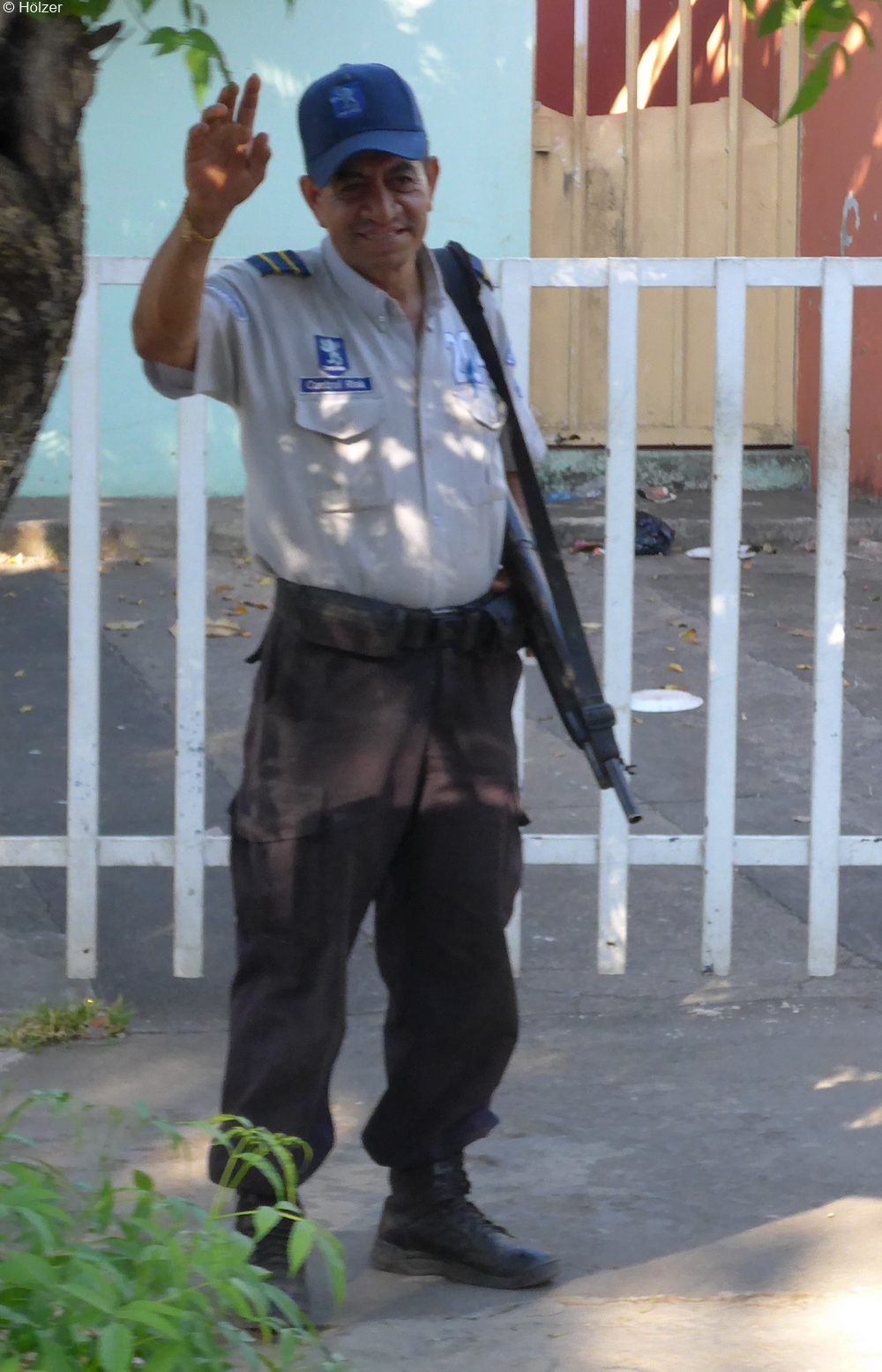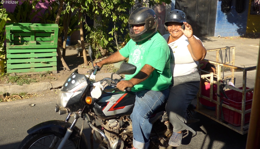Die "Station", wo man hätte aussteigen können, war an einem Supermarkt. Dort sollte die Bahn in etwa 40 Minuten wieder vorbeikommen. Die Alternative war, sitzen zu bleiben und durch Acajutla zu zuckeln. Da noch kein Mineralwasser auf unserer Einkaufswunschliste stand, war die Stadtrundfahrt sicher eine gute Wahl.