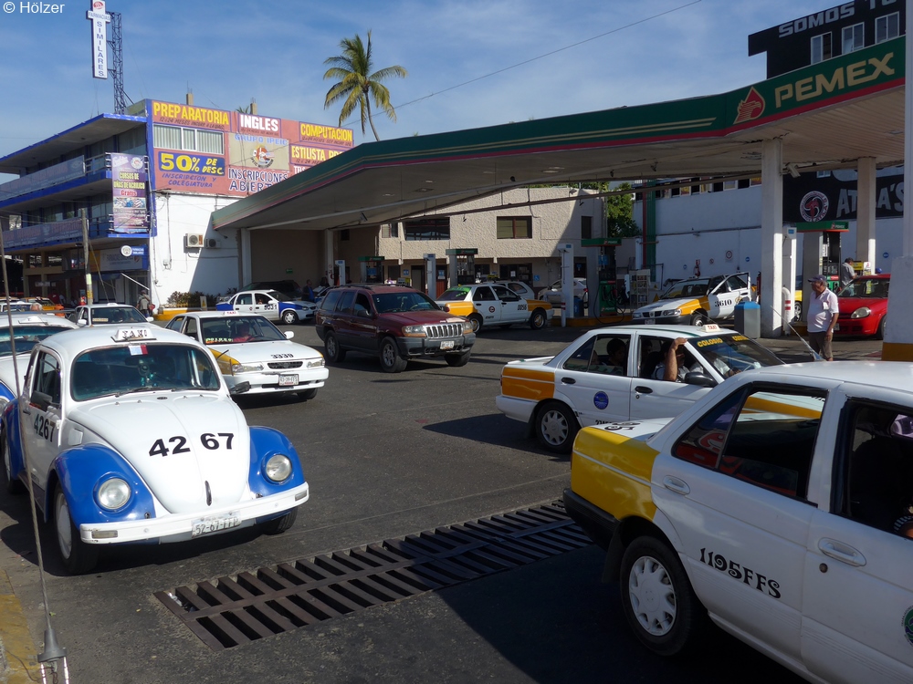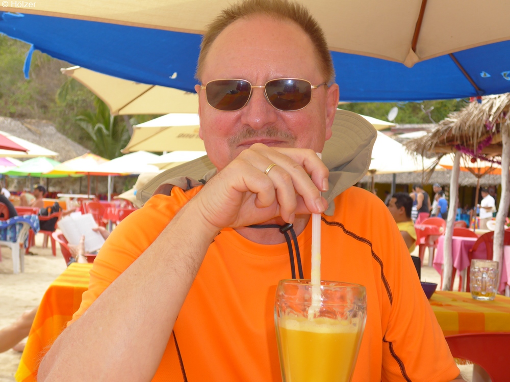 Huatulco ist ein typischer Ferienort am Fuße des Gebirges Sierra Madre del Sur. Jetzt bei unserer Ankunft früh um 9:00 Uhr hätte es allerdings wenig Sinn gemacht das Feuerzeug zu zücken, wie man es bei den Zillertaler Schürzenjägern zu tun pflegt, wenn sie die Sierra Madre del Sur besingen, da die Sonne schon viel zu grell vom Himmel brannte.