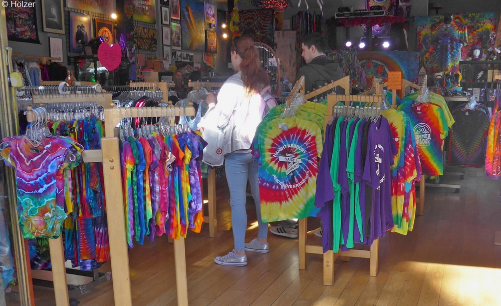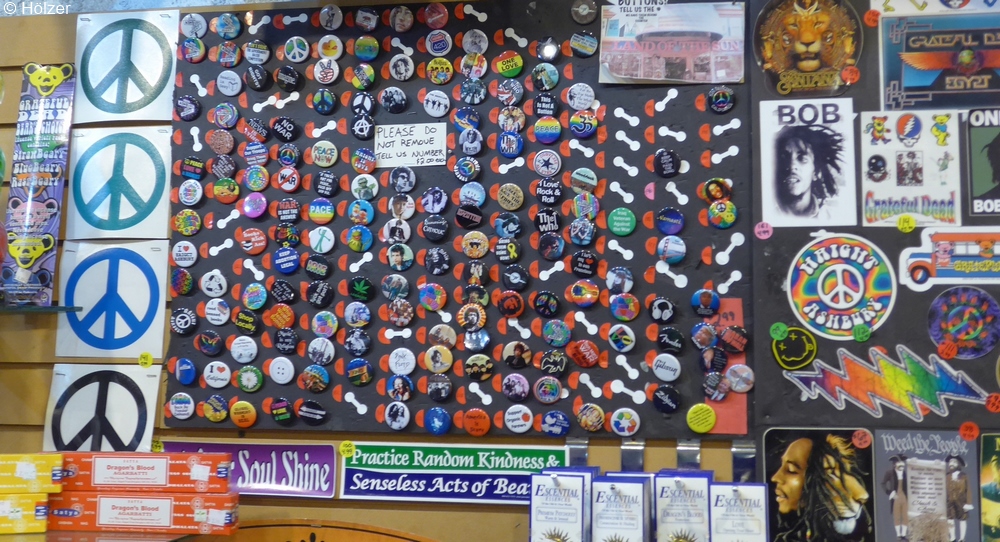 In Haight Ashbury angekommen, erwartete mich in der Haight Street selbst ein kunterbuntes Sammelsurium von Geschäften, Cafés und Pinten, die sich alle bemühten, den Hippie-Zeitgeist irgendwie widerzuspiegeln. Natürlich gab es hier nur noch wenig Alternatives, sondern das Meiste war ganz klar dem touristischen Kommerz geschuldet, aber gefallen hat es mir dennoch sehr gut.