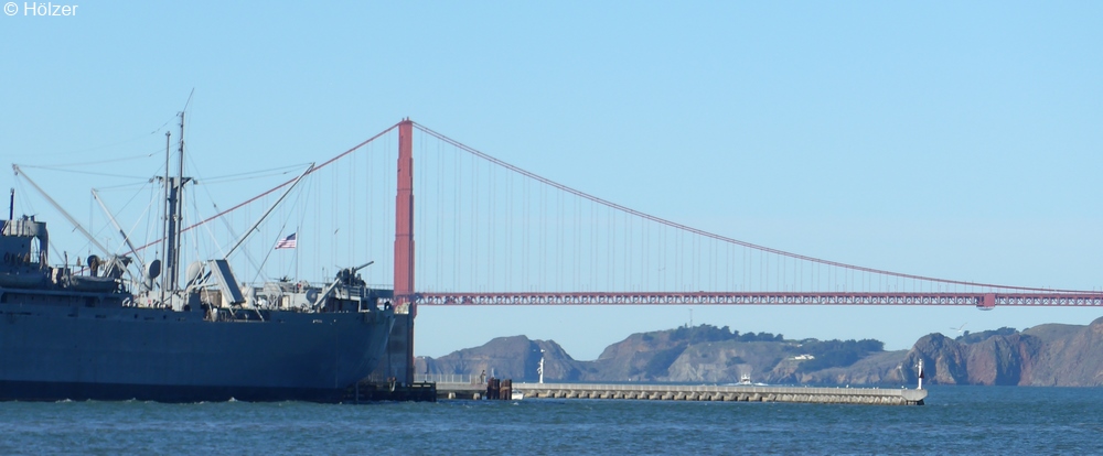 Um 7:17, dem Zeitpunkt des Sonnenaufgangs näherten wir uns der Golden Gate Bridge, so war es geplant und so hat es der Kapitän genau getimet.