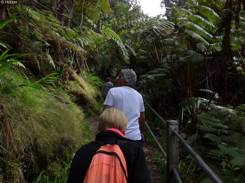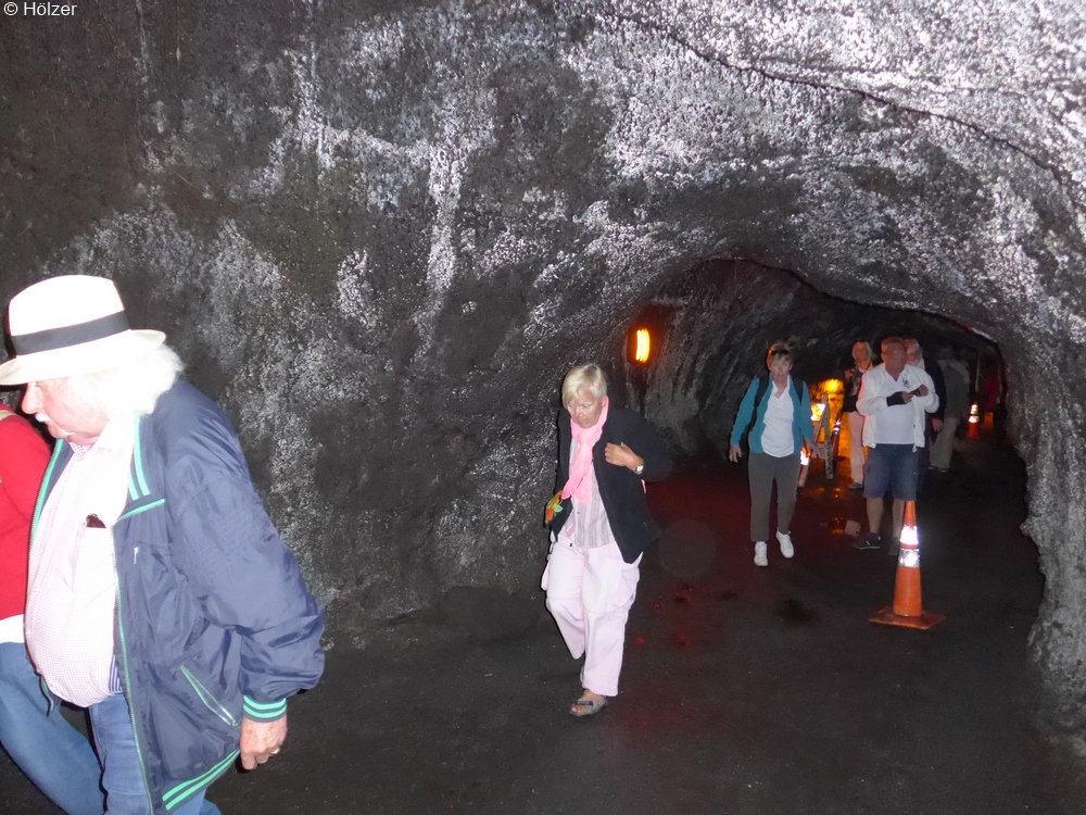 Auch hier verhinderte mal wieder die knappe Zeit des ausflügenden Kreuzfahrers eine intensivere Betrachtung der Exponate und Erklärungen, denn auf geht's zum nächsten Ziel, dem Lavatunnel "Thurston Lave Tube". Solche Tunnel entstehen, wenn bei einem Lavastrom die äußere Schicht erkaltet, während sie innen noch weiterabfließt.