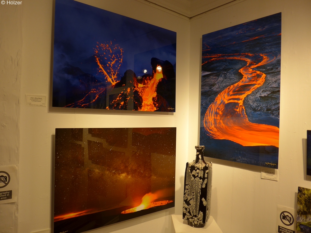 Imposante Fotos von glühenden Lavaströmen gab es auch in der Kunstgalerie am Besucherzentrum zu sehen.