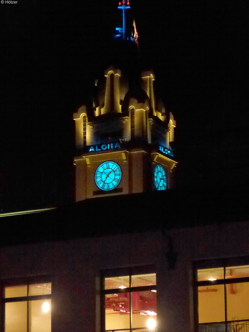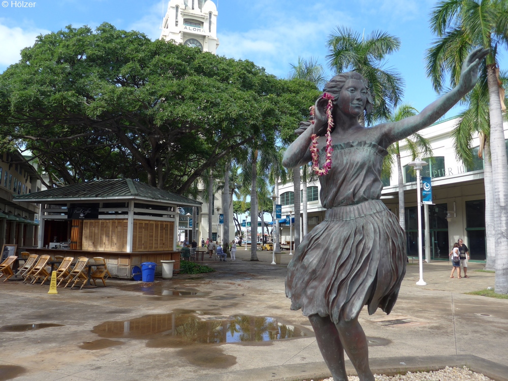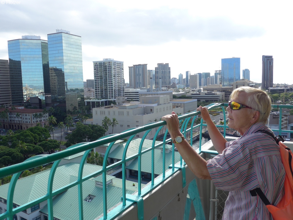 Bevor die AMADEA um 12:00 Uhr Honolulu verlassen sollte, wollten wir den Vormittag nicht als Stubenhocker auf dem Schiff verbringen und zogen noch einmal los. Der Weg führte uns zum Aloha Tower, ein 10-geschossiger Uhrturm. Mit dem Fahrstuhl gelangten wir bequem auf die Besucherplattform.