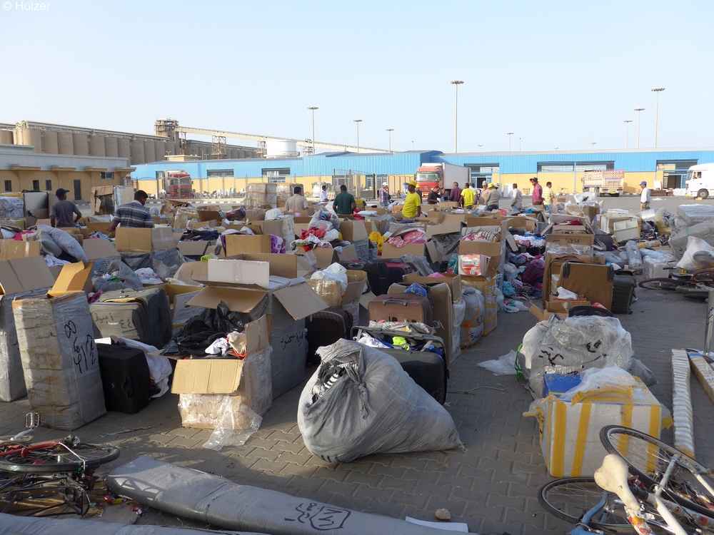 Die Sachen, die hier mehr oder weniger lose lagerten waren Spenden von Ägyptern für Ägypter, die in Saudi-Arabien leben, soweit die Information, die wir erhalten hatten.