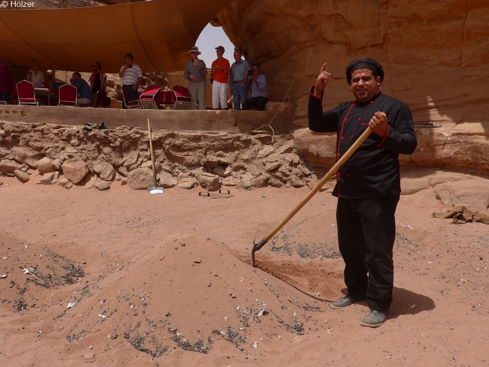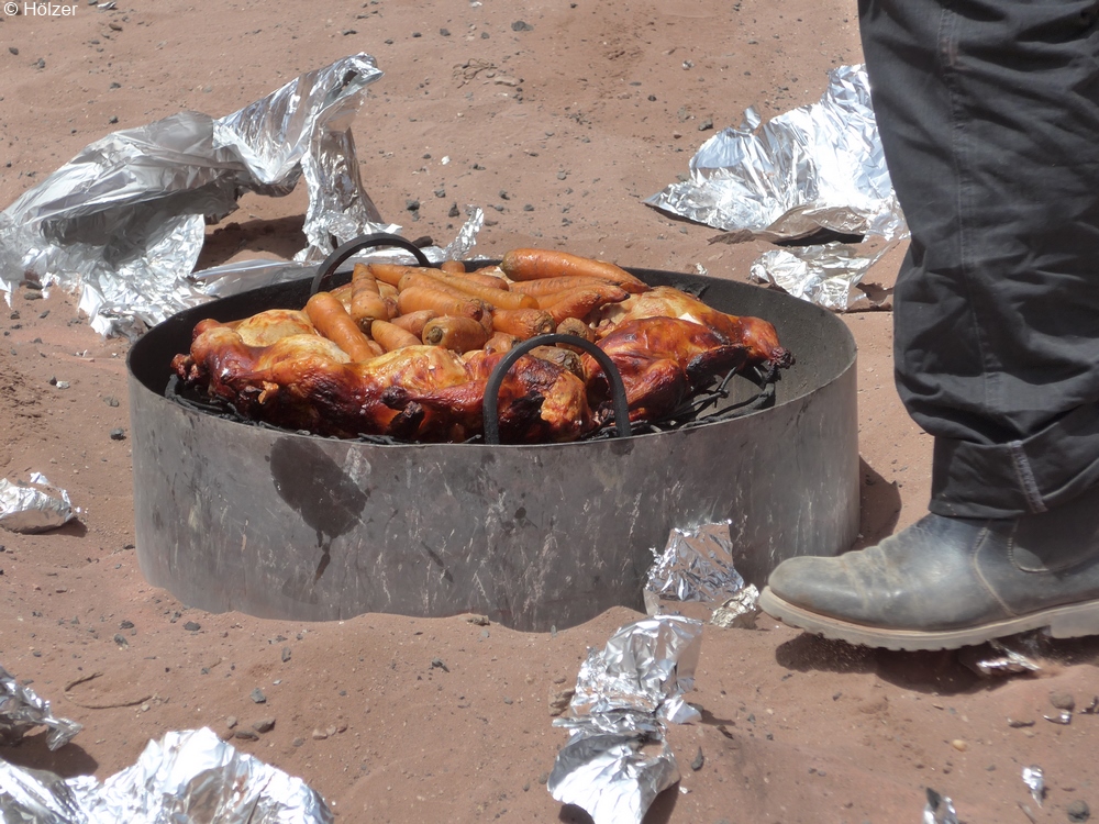 But the Show must go on. Wir bestiegen die Busse, die hier auf uns warteten und uns zu einem Camp brachten, wo wir zu Mittagessen sollten - Lamm und Hühnchen aus dem Erdofen.