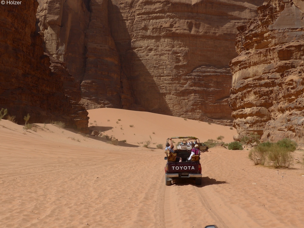 Aber wenn wir fuhren, war es fantastisch. Klassische Sandwüste inmitten von kolossalen Felsformationen, so in etwa könnte man es beschreiben, aber eben nur in etwa. Man muss es einfach gesehen und erlebt haben.