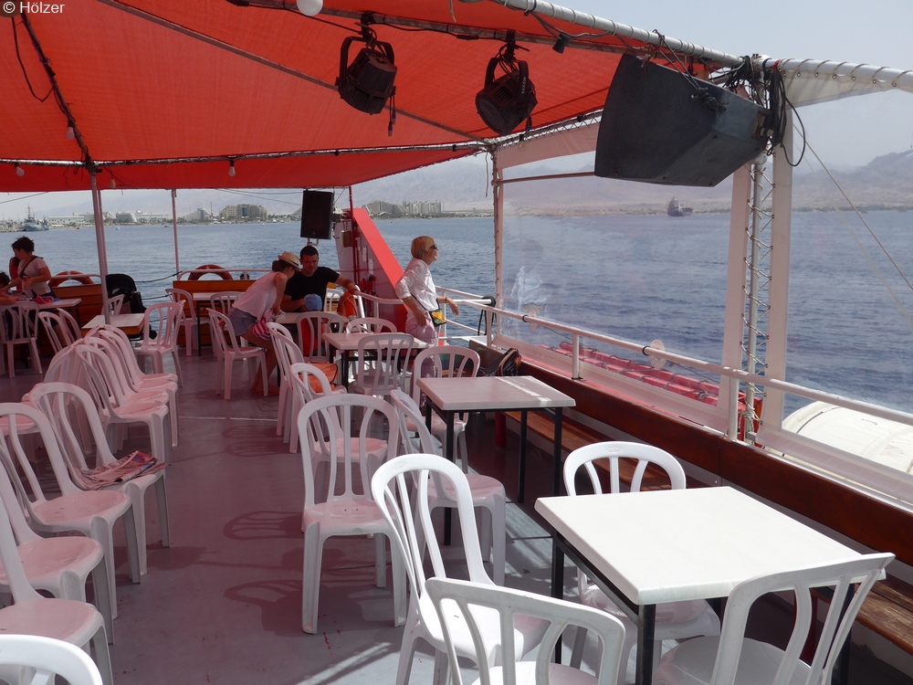 Wir stießen auf einen Bootstourenanbieter, der eine zweistündige Fahrt mit einem speziellen Glasbodenboot anbot. Für 80 israelische Schekel (knapp 20 Euro) pro Person waren wir dabei