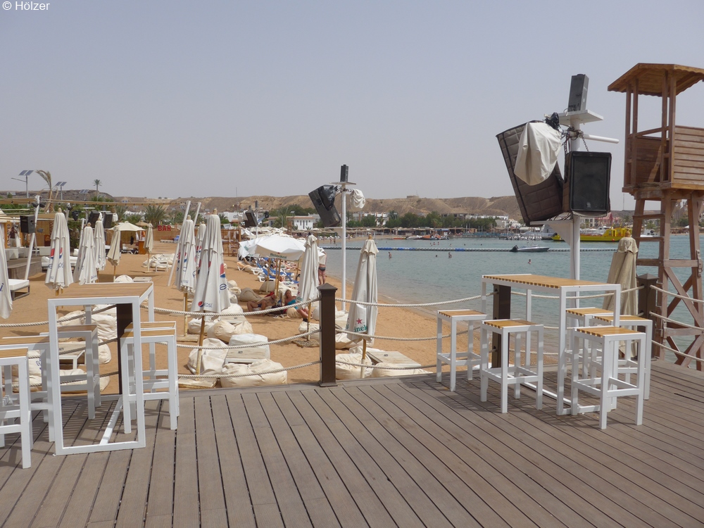 Wir wussten, dass es in unmittelbarer Nähe unseres Liegeplatzes mehrere Strandabschnitte mit vernünftiger Infrastruktur gibt. Aber wegen der Kürze der Zeit, beschränkten wir uns darauf, ungebadet nur einen Drink zu nehmen.