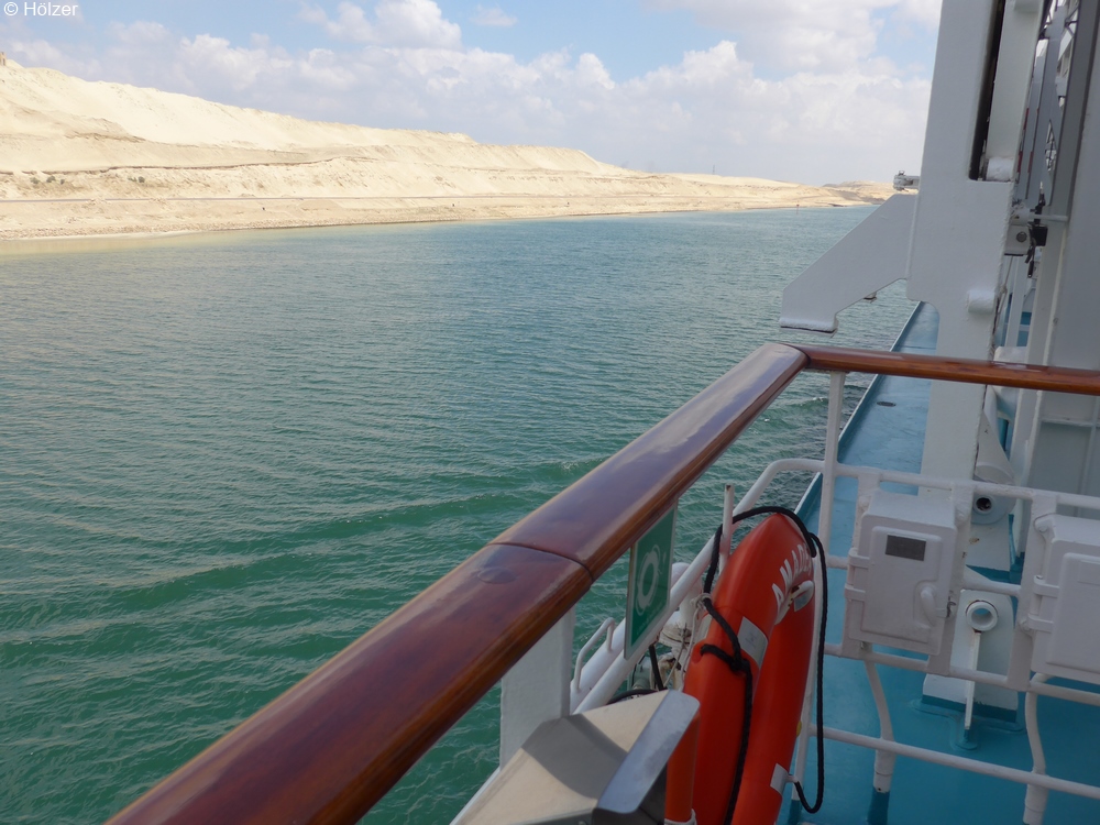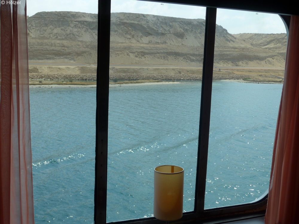 Wir müssen wohl gestern Abend rechtzeitig den Sammelpunkt für die Zusammenstellung des Konvois für die Passage durch den Suezkanal erreicht haben, denn als wir heute Morgen um halb acht aufgestanden sind, waren wir schon seit drei Stunden im Kanal unterwegs.