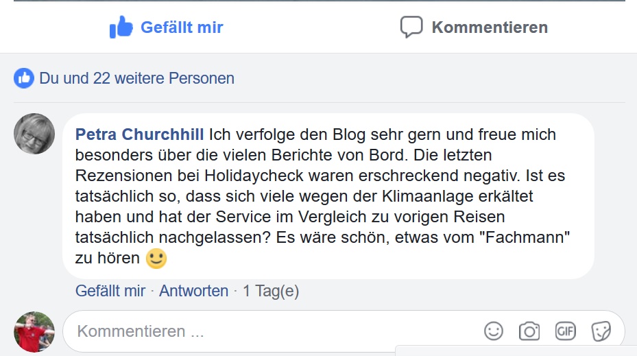 Zwar nicht im Facebook-Kommentar aber bei Holidaycheck wurde moniert, dass trotz freier Platzwahl einige Gäste auf ihren Stammplätzen bestehen.