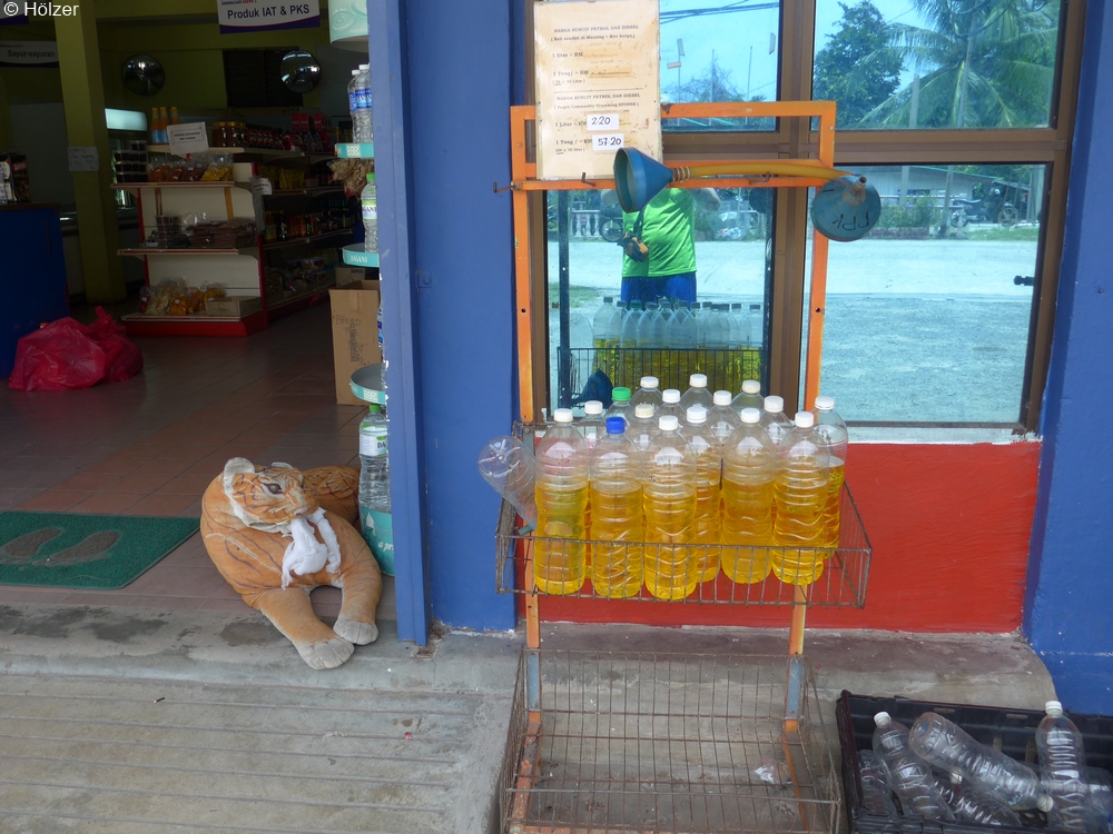 Und zwischen Hafen und Yangon gab es außer ein paar Strohhütten, in denen Speisen und Getränke für die LKW-Fahrer angeboten wurden, die mit ihren Tanklastern aus den umliegenden Raffinerien Öl abholten, nichts, keine Dörfer oder Orte.