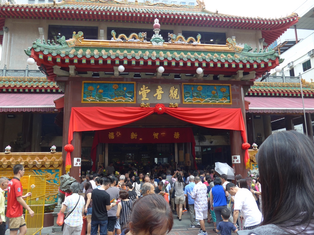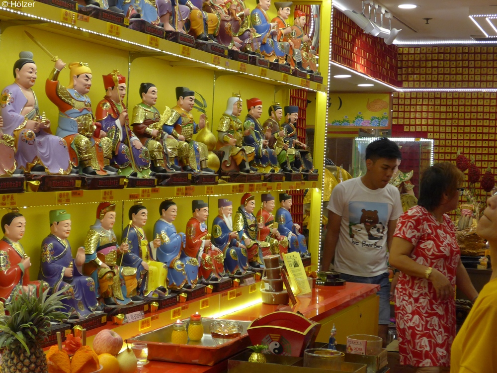 Mitten im Marktgeschehen: Ein von Gläubigen gut besuchter Tempel. Rund um diesen Tempel wurden verstärkt Räucherstäbchen und Blumen angeboten.