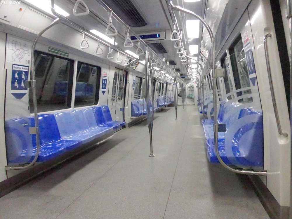 In "unserer" Metro-Station konnte man kein Tagesticket kaufen. Diese gibt es nur in ausgewählten Stationen, sodass wir mit Einzelfahrscheinen unsere Unternehmungen bestritten. Eine Fahrt kostete umgerechnet einen knappen Euro. Der Kauf der Fahrscheine am Automat ist zwar einfach, aber an den meisten Stationen; so auch hier an der völlig verwaisten Marina South Pier, standen Helfer bereit, die für uns die Automaten erklärten und bedienten.