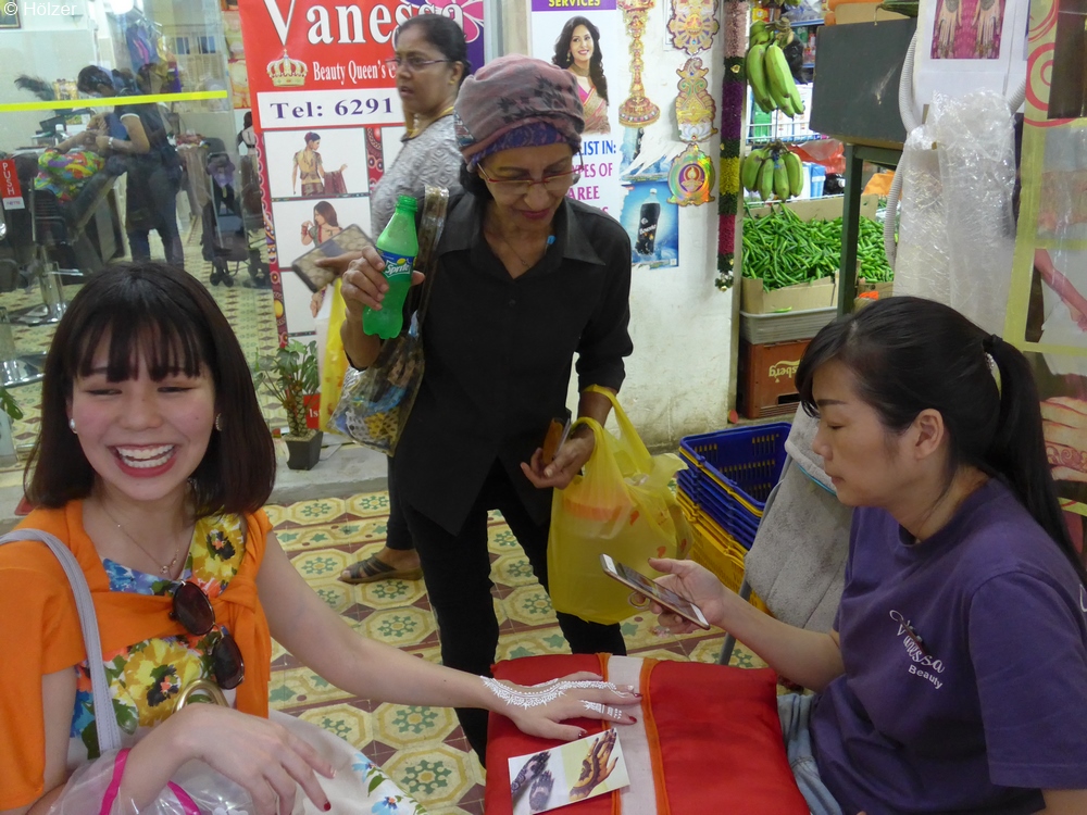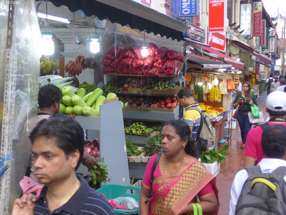 Im Gegensatz zu Chinatown, dass schon seit einigen Jahren seinen eigentlichen Charme verloren hat, weil die alten Gebäude und Geschäfte modernisiert wurden, ist Little India noch irgendwie typisch und authentisch. Gerade die zahlreichen Geschäfte, in denen Blumengirlanden hergestellt und verkauft werden könnten genauso in Mumbai stehen.