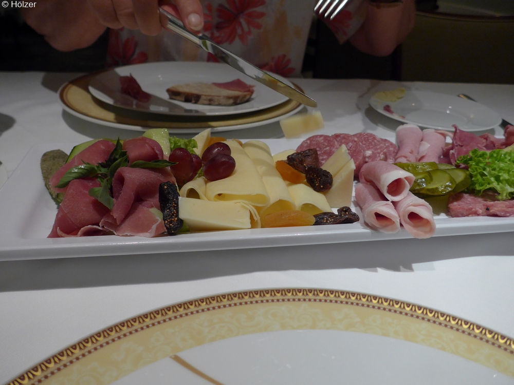 Deshalb haben wir gerne das Angebot der Küche angenommen, bei Bedarf statt des angebotenen Menüs, eine Vesperplatte zu erhalten. Einzige Bedingung, möglichst rechtzeitig, am besten bereits beim Frühstück, dem Oberkellner oder der Maitre Bescheid geben.